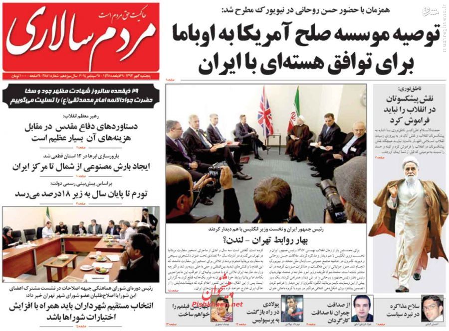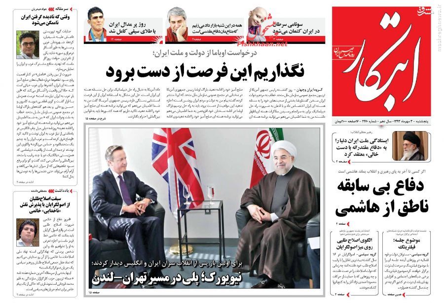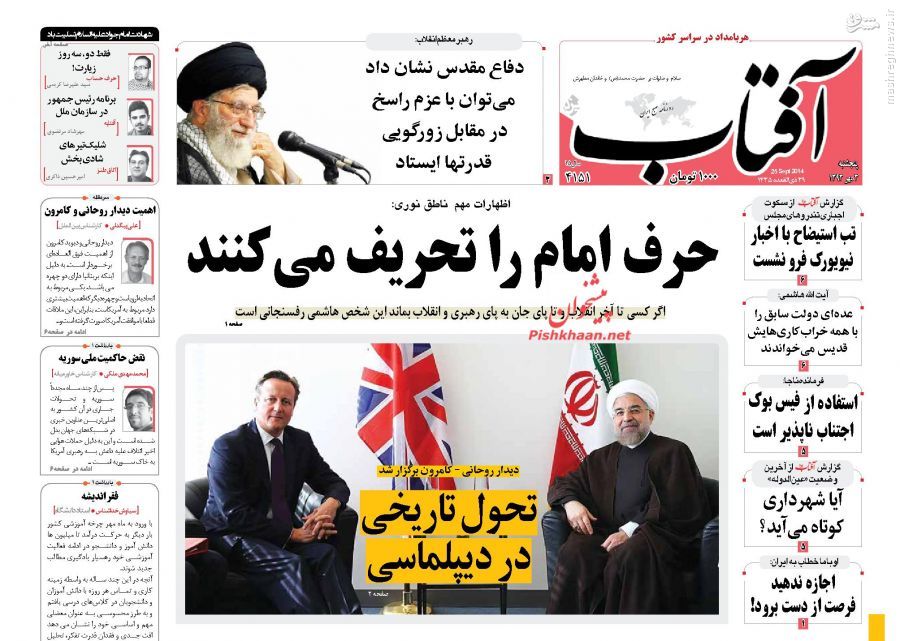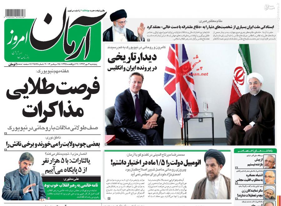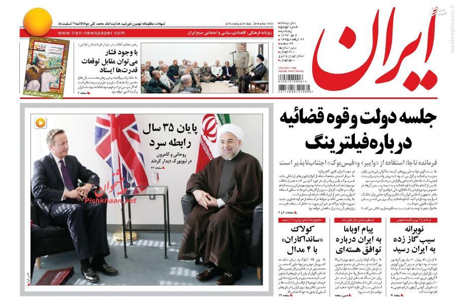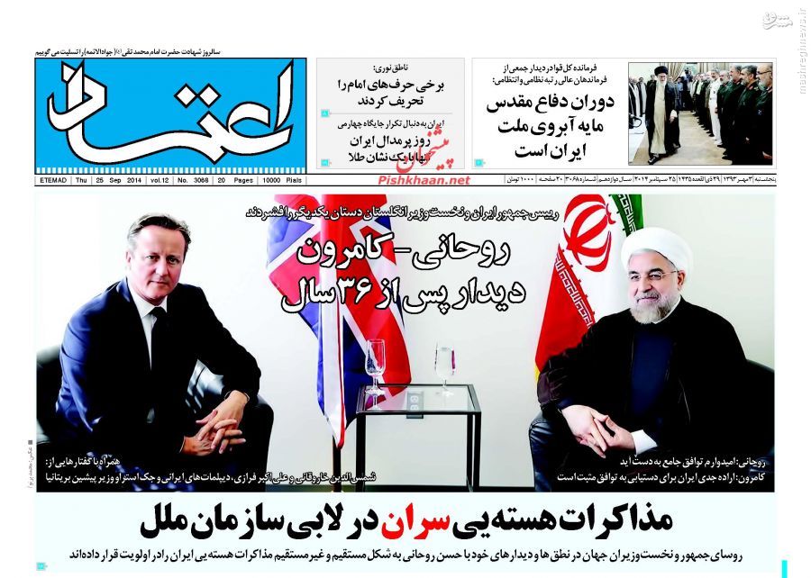 دیدار رئیس جمهور کشورمان با دیوید کامرون با ذوق زدگی برخی روزنامه ها روبرو شد به نحوی که تمام صفحه اول خود را به این دیدار اختصاص دادند اما کامرون ساعاتی پس از دیدار با دکتر روحانی در مجمع عمومی سازمان ملل با توهین به ایران مدعی شد ایران از تروریسم حمایت می کند.