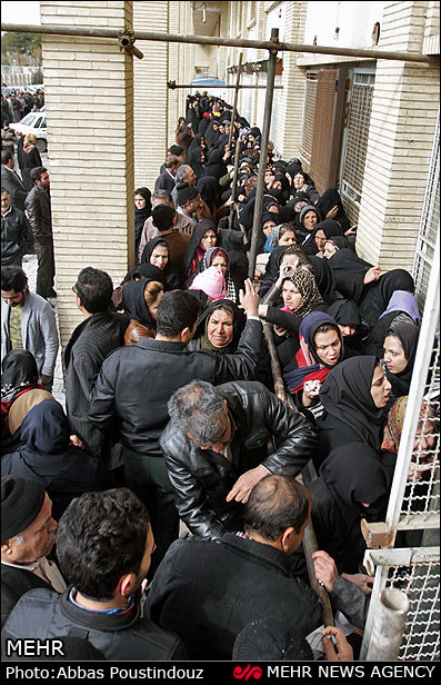 نمیدونم تعریف کرامت انسانی و عدالت عوض شده یا فقط منم که از دیدن این صف های طولانی و گاهی بی ثمر مردم احساس بدی بهم دست میده ، ببینم اگه به جای اینکه به جای برنج پاکستانی و چهارتا تخم مرغ دادن و ملت رو تو این سوز و سرما ساعت ها تو صف نگاه داشتن پولشو تو حساب مردم میریختین چه اتفاقی می افتاد؟